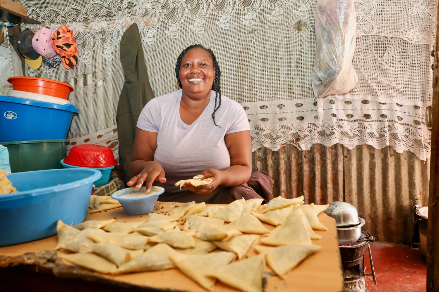 Making ends meet often means turning survival into creativity. For many residents, their one-room tin-walled homes double as business premises by day, especially for women running small food businesses to support their families.