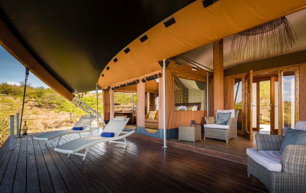 Each of the 12 luxurious tents are designed to be your home away from home throughout your stay, with an en suite bathroom, inviting private deck and views. There are six tents on either side of the Main Tent, each accessible by a walkway, the furthest of which is approximately a five minute walk from the Main Tent. Ten of the suites can be configured with either king or twin beds and two of the suites are four poster king size beds designed to accommodate up to two additional children on sofa beds in the living room. They can cater for a maximum of 24 guests in the camp at any one time.