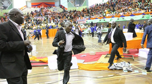 Soon after the chaos started, CORD leader Raila Odinga, former Vice President Kalonzo Musyoka and other VIPs were quickly whisked out of the venue.