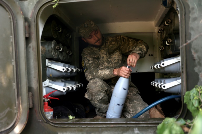 A Ukrainian artillery man prepares to fire from a position near the city of Lysychansk in eastern Ukraine. © AFP / Anatolii STEPANOV