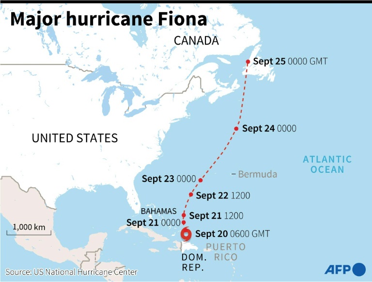 Map showing the projected path of Hurricane Fiona © AFP / Sophie RAMIS