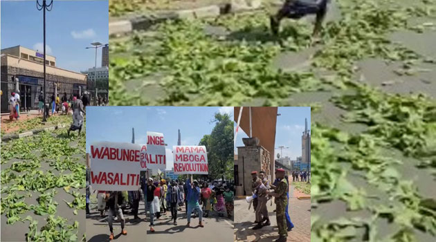 The demonstrators were waving placards with messages such as “Mama Mboga Revolution,” “Wabunge Wasaliti,” and “No to Finance Bill.”
