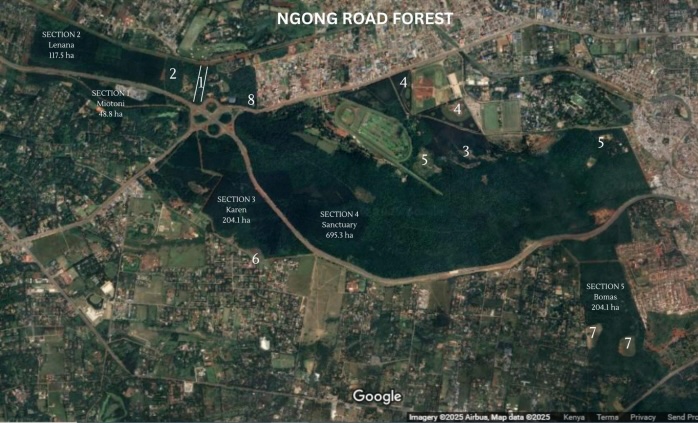 - Ngong Road Forest – Rapid destruction due to infrastructure projects, private leases, and early entry permits: