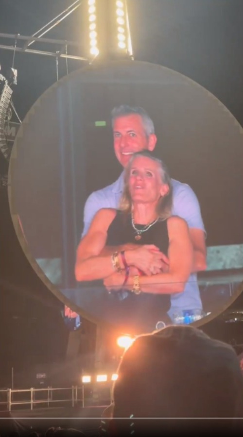 In the clip, which initially appeared on a giant screen at Gillette Stadium in Foxborough, Massachusetts, two people are seen with their arms wrapped around each other.