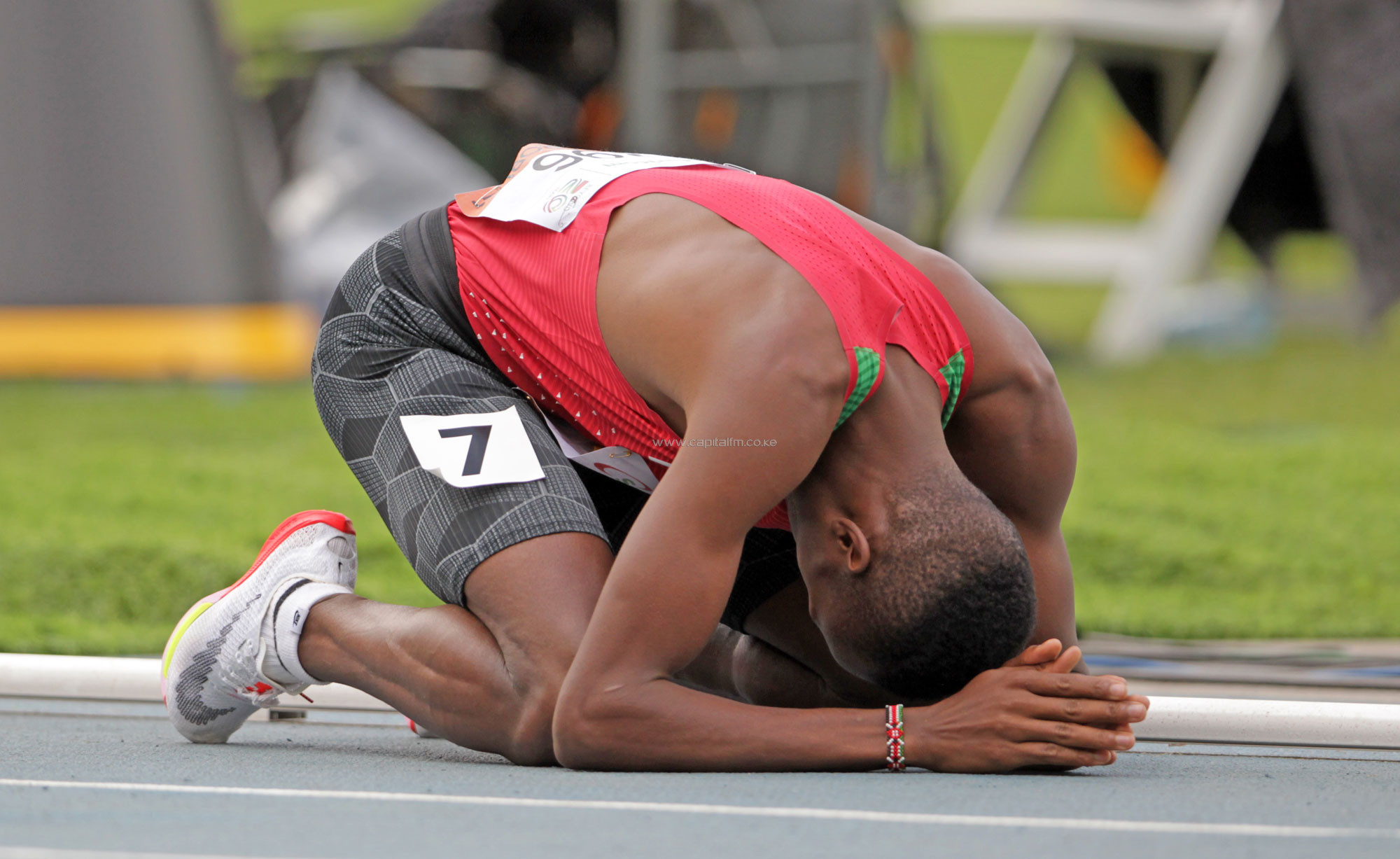 Etyang was celebrating at third but minutes after the race, the results were updated with Etyang disqualified after video review showed he had stepped outside the track at a bend.