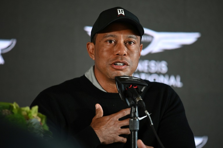 Golf superstar Tiger Woods speaks to the media at the US PGA Tour Genesis Open where he is tournament host © AFP / Robyn Beck