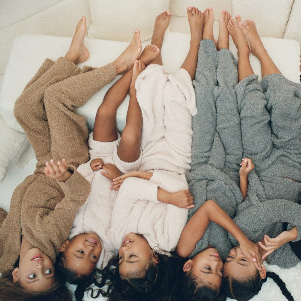 Kim Kardashian West’s daughters North and Chicago modelled her new SKIMS Cozy Kids collection.