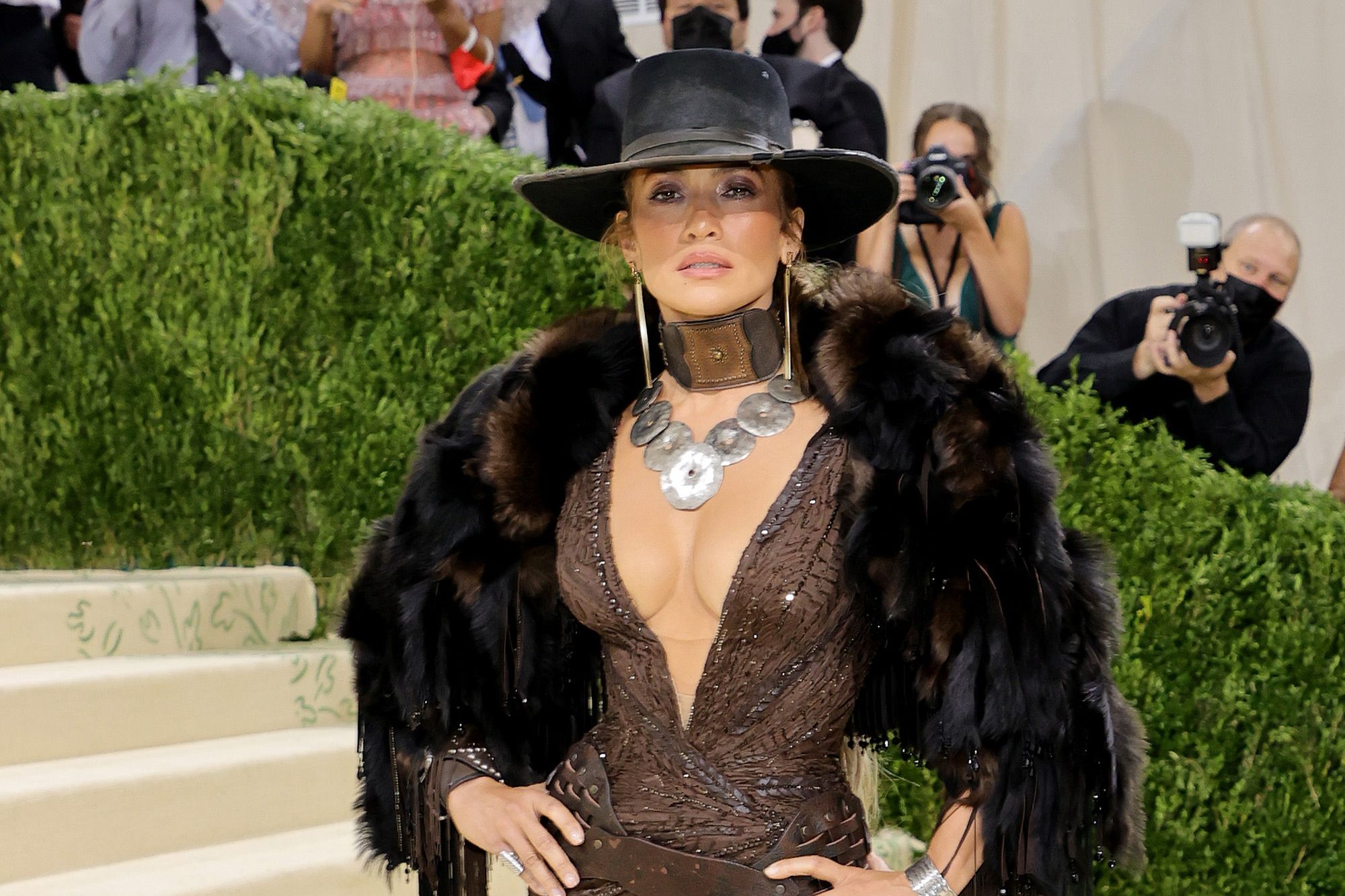 Jennifer Lopez also made an ode to cowboy culture with her sexy get-up and a huge cowboy hat to match.